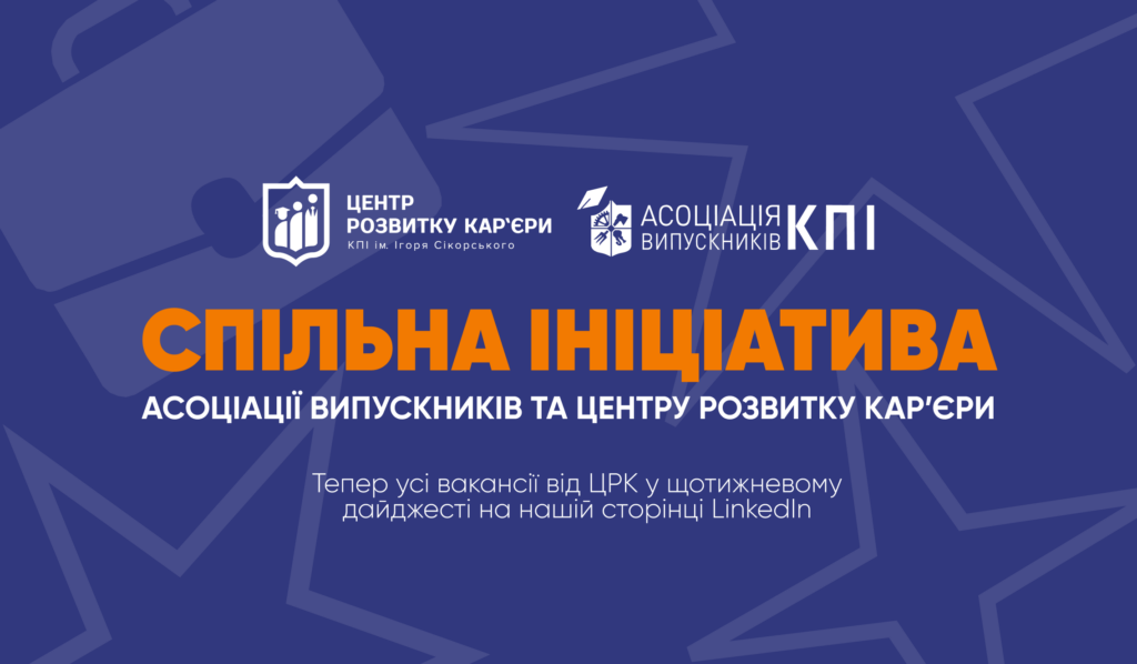 🚀 Асоціація випускників КПІ відтепер співпрацює з Центром розвитку кар’єри. У межах цієї ініціативи ми щотижня публікуватимемо у LinkedIn дайджест вакансій від ЦРК, аби всі можливості були зібрані в одному місці та зручні для пошуку.